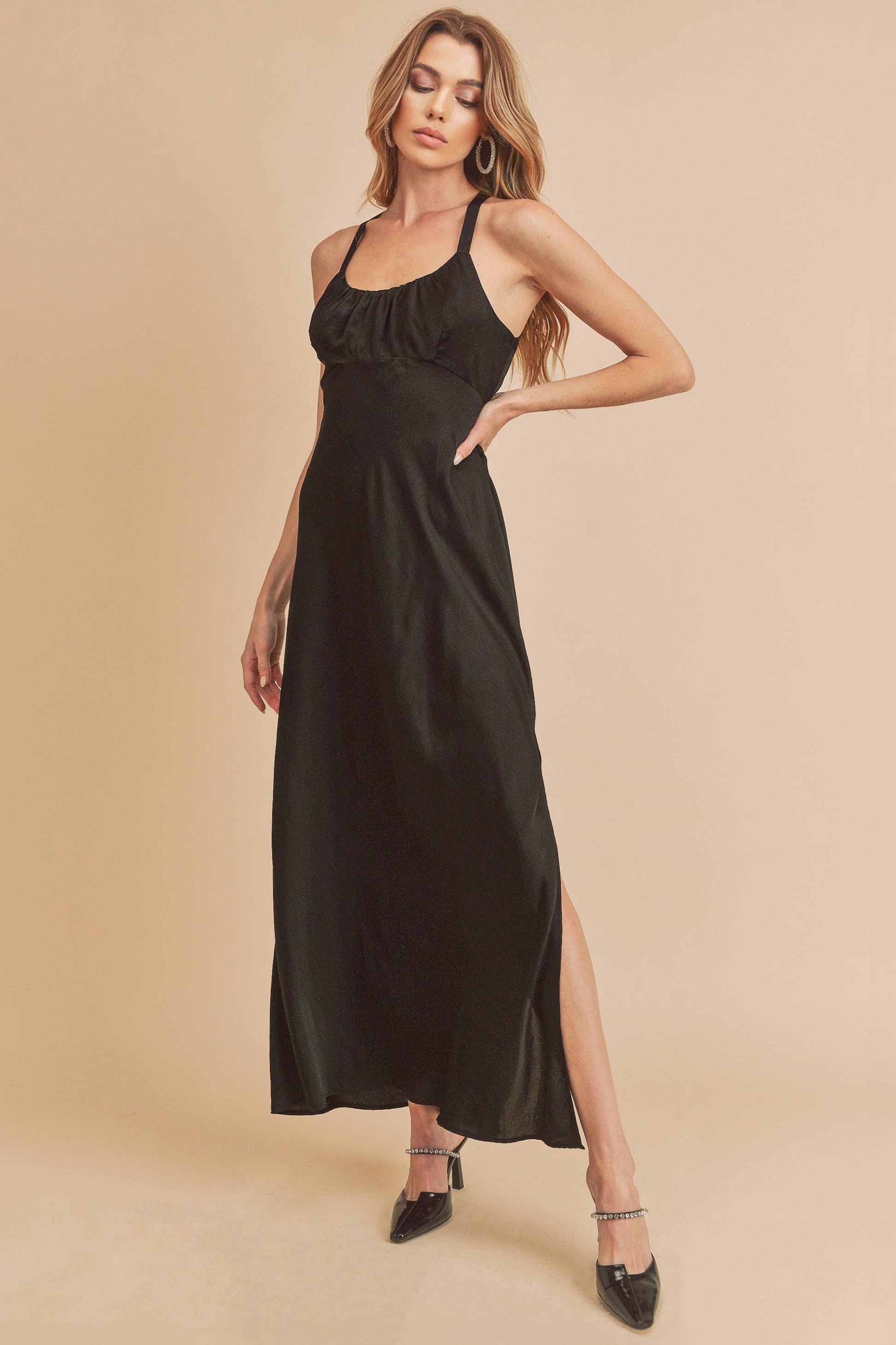 Elegant Mae Dress flaunts a figure-flattering silhouette crafted from a light and smooth fabric that is lightweight, stiff yet soft and feels delicate.