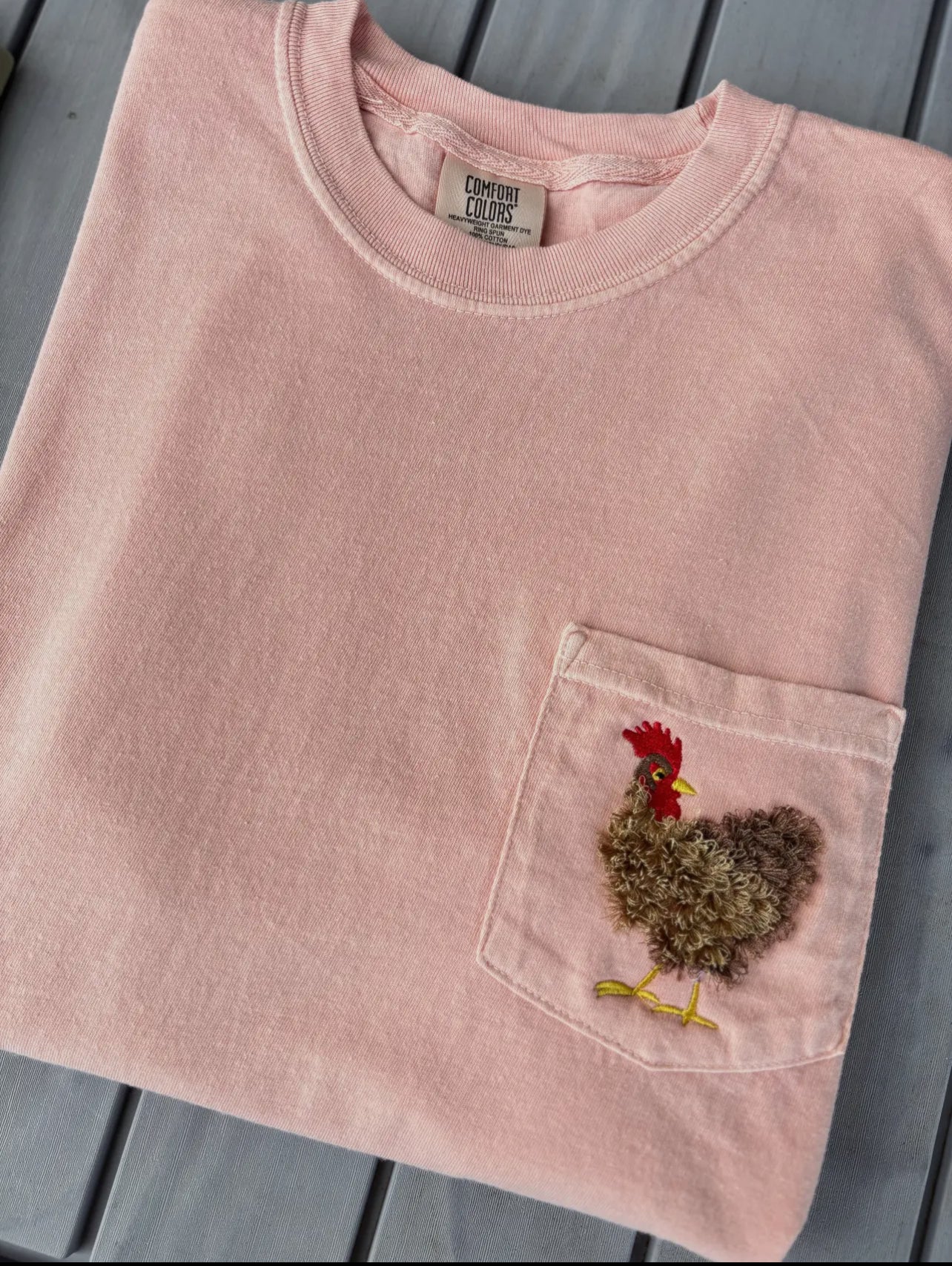 Fuzzy Chicken Embroidered Pocket